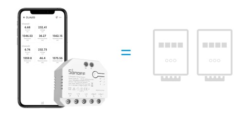 Sonoff DUAL R3 oferuje niezależny pomiar dla obu kanałów. Możesz więc monitorować zużycie dwóch niezależnych urządzeń końćowych.