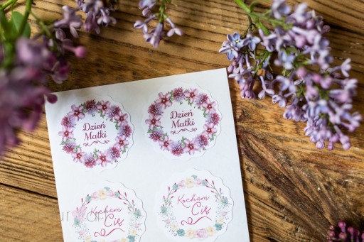 Zestaw kwiatowych naklejek DZIEŃ MATKI, z okazji Dnia Mamy - komplet 10 sztuk