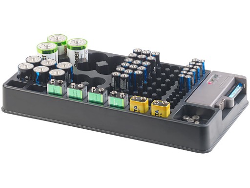 - Miejsce na 98 baterii: 48x typu AA, 24x typu AAA, 8x typu 9 woltów, 10x typu C, 8x typu D