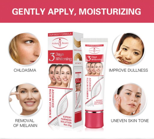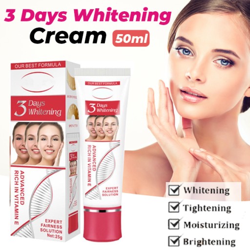 Krem nawilża, wybiela, zmiękcza skórę oraz zapobiega powstawaniu piegów i przebarwień.