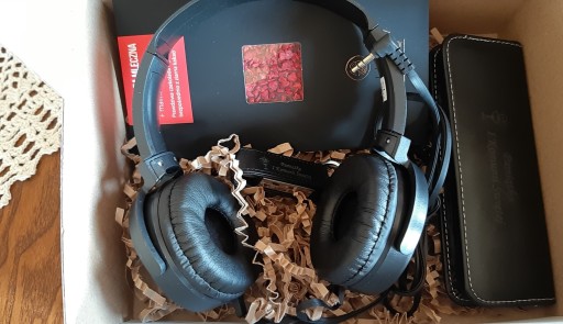2) SŁUCHAWKI nauszne składane o regulowanej długości, bardzo dobrą jakością dźwięku i wygodne; długość kabla: 1,2 m.