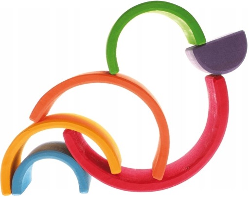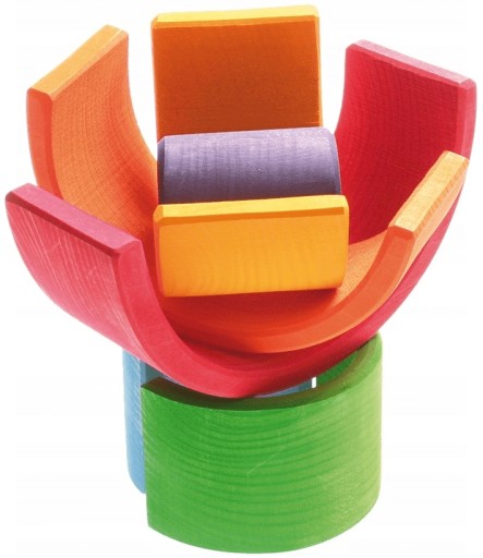 Sześć pięknie wybarwionych łuków, ma w sobie chyba tyle samo magii co tęcza na niebie. Niby nic a dziecięca wyobraźnia ożywa. Początkowo nieśmiało poznaje wszystkimi zmysłami każdy drewniany element. Jego strukturę, zapach, smak, wagę. Powoli zaczyna nimi manipulować, sprawdzając różne warianty by na koniec z rozmachem wplatać je na wiele sposobów w kolejne scenariusze zabaw, jako element fantastycznych konstrukcji łączących w sobie nie tylko elementy tęczy, ale też inne zabawki i klocki. Łuki Grimm’s mogą stać się mostami, jaskiniami, trasami dla aut.
