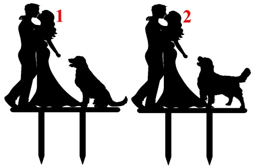 Topper na tort weselny - PARA MŁODA I PIES RASY GOLDEN RETRIVER