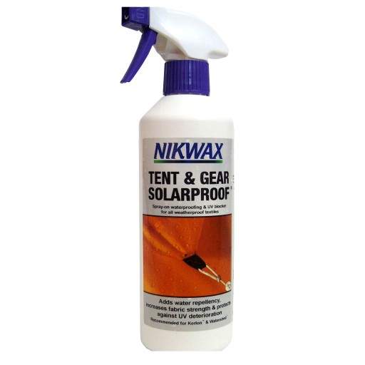 Nikwax Tent Gear jest impregnatem do namiotów i markiz oraz wielu wyrobów z tkanin syntetycznych o właściwościach wodoodpornych takich jak plecaki, torby rowerowe, torby fotograficzne oraz parasole.