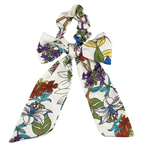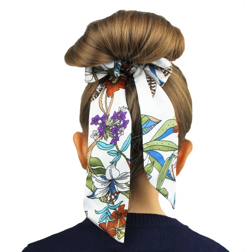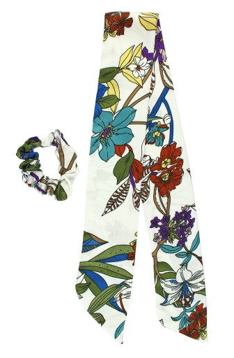 Kolorowy, kwiatowy deseń sprawi, że prosty kucyk lub niedbały koczek staje się niebanalny i uroczy.