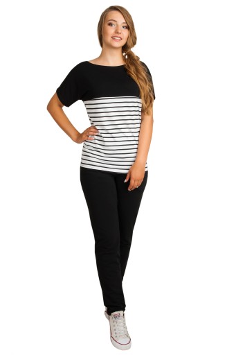 Zastosowany panel jest bardzo przyjazny dla brzuszka- nie posiada z przodu gumy- ma ją zaś na tyle, co sprawia, że spodnie nie uciskają, ale ładnie trzymają się na sylwetce.