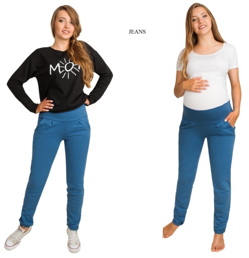 Spodnie ciążowe, dresowe ze specjalnym bezuciskowym panelem o średniej wysokości- idealne rozwiązanie od pierwszych tygodni ciąży na późniejsze miesiące lub dla mam, które nie preferują wysokich paneli ciążowych.