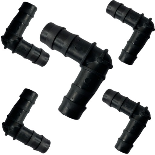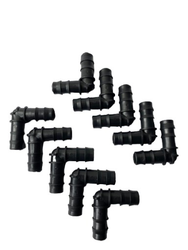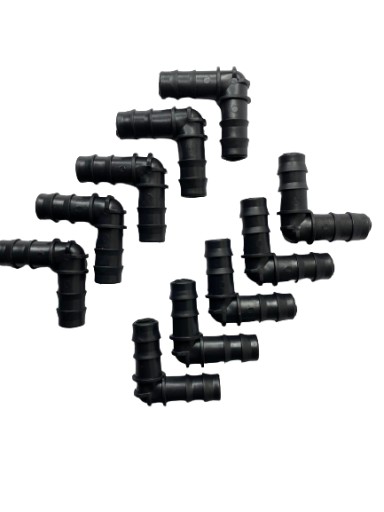 Wysokiej jakości kolana służące do instalacji standardowych linii kroplujących lub rur, niezbędnych do stworzenia kompleksowego systemu nawadniającego rośliny.