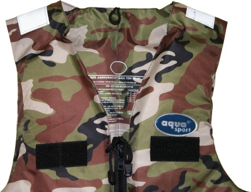 Kamizelka asekuracyjna dla wędkarzy "AQUA FISH 50N" jest przeznaczona do stosowania na wodach osłoniętych, dla osób umiejących pływać, w szczególności dla myśliwych i wędkarzy.