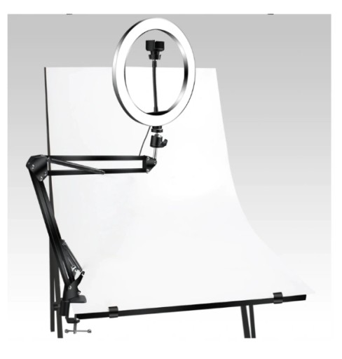 Statyw aluminiowy, regulowane ramię LAMPA RING - fotografia jedzenia, produktowa.