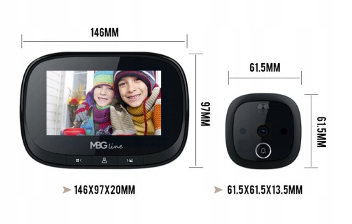 WIZJER MBGLINE LCD 4.3" ZDJĘCIA DZWONEK JUDASZ WBUDOWANY AKUMULATOR ORAZ WBUDOWANY CZUJNIK RUCHU PIR! JEDYNY TAKI MODEL NA RYNKU, JAKOSĆ HD 1MPIX 720P WERSJA BLACK EDITION!