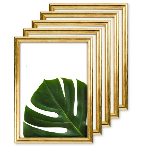 RAMKA NA ZDJĘCIA 5 SZT 13x18 FOTO RAMA DREWNIANE ZŁOTE ZESTAW