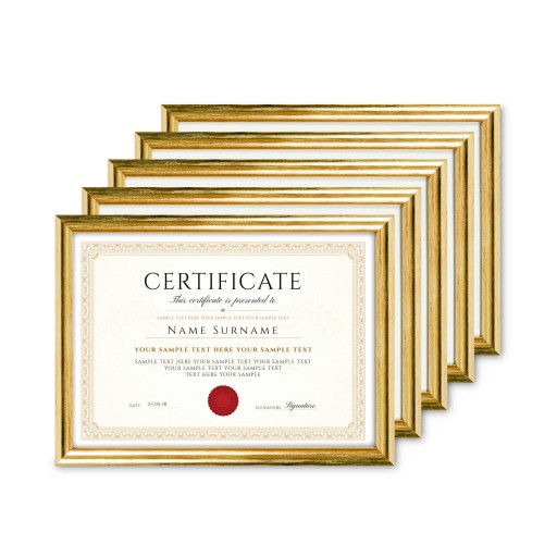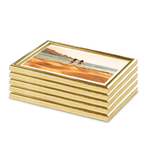 Fotoramki w kolorze złotym o przekroju profilu 12x13 mm wykonane w 100% z drewna. Pakiet ramek drewnianych jest doskonałą propozycją do ekonomicznej oprawy zdjęć, rysunków, druków. Ramki pakowane są w zestawie po 5 szt. Wyposażone są w szkło mineralne. Plecki wykonane są z twardej płyty HDF. Ramki na zdjęcia do rozmiaru 18x24 cm dodatkowo posiadają stopkę / nóżkę która pozwala eksponować oprawiony obraz na biurku lub regale.