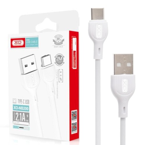 ⭐️ KABEL USB XO NB200 | USB<>TYP-C | BIAŁY | 2 METRY 2.1A