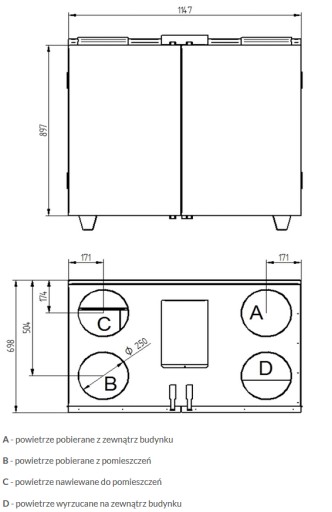 Centrala przeznaczona jest do wentylowania pomieszczeń o powierzchni do 460 m2.