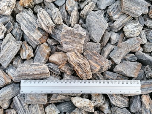 Kora kamienna naturalnego pochodzenia to gnejs w kolorze brązowo-żółtym z delikatnie mieniącymi się złotymi niteczkami. Kształtem oraz fakturą przypomina barwę kory sosnowej. Produkt świetnie sprawdza się jako materiał ściółkujący pod drzewami, krzewami oraz żywopłotami. Idealnie pasuje również jako uzupełnienie na rabatach, skalnikach oraz w wolnych przestrzeniach przy alejkach lub ścieżkach spacerowych w ogrodzie. Kora kamienna świetnie ogranicza porost chwastów w miejscach gdzie jest wysypana. Jest zupełnie mrozoodporna, nie ulega rozkładowi oraz jest odporna na trudne warunki atmosferyczne. Produkt dekoracyjny, zachwyci swą unikatową strukturą niemal każdego.1 tona grysu wystarczy na około 16m2 powierzchni, biorąc pod uwagę grubość usypywanej warstwy kamienia około 5 cm. Dlaczego warto kupic produkt?