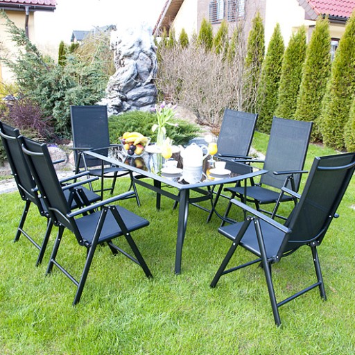 Konstrukcja stołu wykonana jest z wysokiej jakości aluminium która jest malowana farbą proszkową. Blat stołu Verona to hartowane szkło w kolorze czarnym. Szklany blat posiada otwór z zaślepką do umieszczenia parasola