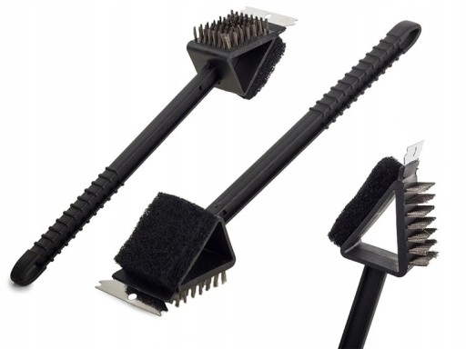 Szczotka została wykonana z bardzo wytrzymałego i mocnego drutu co pozwala na dokładne czyszczenie grilla, a stalowy skrobak pozwala na dokładniejsze czyszczenie. Dodatkowo urządzenie zostało wyposażone w gąbkę.