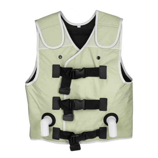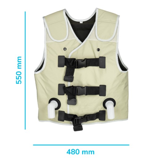 Kamizelka oscylacyjna wielokrotnego użytku dla dorosłych w rozmiarze M, współpracująca z urządzeniem VM-8000. Posiada trzy regulowane pasy zaciskowe, umożliwiające dokładne dopasowanie do sylwetki ciała.