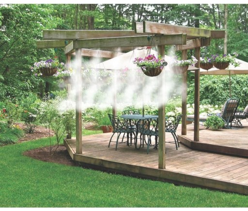 Zamocowana w odpowiednim miejscu, np. pod zadaszeniem na tarasie, pod parasolem ogrodowym lub pawilonem, skutecznie obniża temperaturę otoczenia o nawet 10-12st. C.
