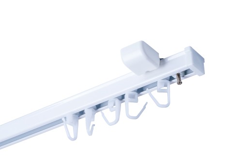 Łączenie szyn w żadnym wypadku nie przeszkadza w przesuwaniu tkaniny! Łącznik zespaja ze sobą dwa kawałki szyn, po zamontowaniu całość wygląda estetycznie i pozwala na przesuw tkaniny przez całą długość szyny.