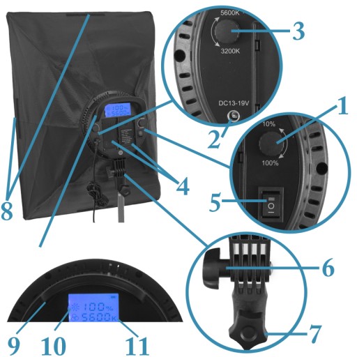 Lampa zapewnia długotrwałe bezawaryjne działanie i doskonałe, naturalne odwzorowanie kolorów ponieważ temperaturę barwową lampy możemy ustawić na 5600K, dodatkowo możemy też ocieplić kadr ustawiając temperaturę do 3200K wygodnym pokrętłem.
