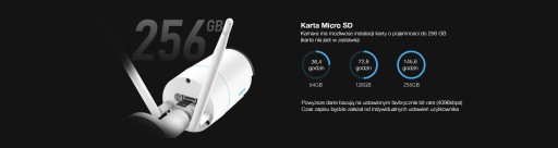 - Karta mikro SD, wbudowany slot, maksymalna obsługiwana pojemność karty do 256G, możliwość podłączenia do rejestratora