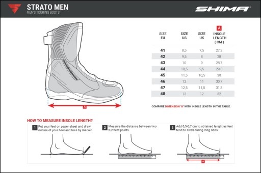 - Numeracja butów motocyklowych może różnić się od numeracji butów na co dzień.