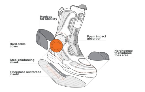 Niewiarygodna lekkość nie wyklucza wysokiego poziomu bezpieczeństwa, który gwarantują buty STRATO. Wyposażone są one w protektor kostki SAP™ wykonany z TPU oraz absorbery impaktu ArmorPlus.