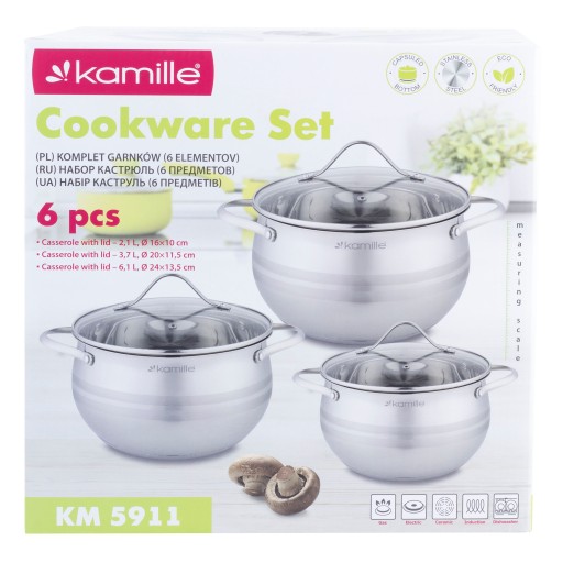 Komplet garnków ze stali nierdzewnej 6 elementów INDUKCJA KAMILLE KM-5911