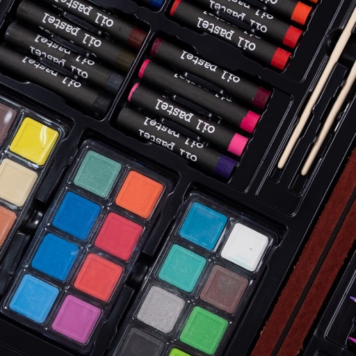 Zestawy artystyczne to szeroki wybór akcesoriów do malowania i rysowania zamknięty w estetycznej walizce do przenoszenia. Komplet składa się z 79 elementów - mnogość przyborów sprawi, że każde użycie zestawu artystycznego będzie doskonałą podróżą w świat sztuki. Wykonane z najwyższej jakości materiałów przybory mają szeroką gamę kolorystyczną, co dodatkowo ułatwi wykonywanie prac plastycznych. Wysokiej jakości akcesoria zawarte w zestawie dobrze kryją papier oraz są bardzo wydajne, dzięki czemu będziesz mógł tworzyć swoje prace przez długi czas.
