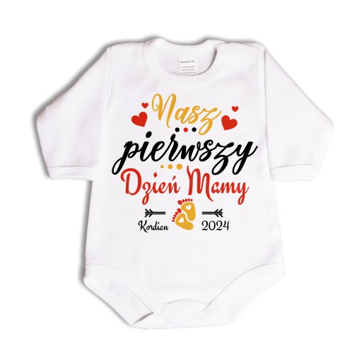 Pierwszy Dzień Matki to wyjątkowe i wzruszające przeżycie dla każdej świeżo upieczonej mamy. Spraw jej piękną niespodziankę w postaci body niemowlęcego z napisem „nasz pierwszy Dzień Mamy, Kocham Cię” albo jeśli jesteś mamą, sama podaruj sobie taki przyjemny prezent na Dzień Mamy!