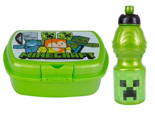 Zestaw śniadaniówka + bidon na licencji gry Minecraft marki Astra. Idealnie nada się jako zestaw śniadaniowy do szkoły lub na wycieczkę. Solidne wykonanie gwarantuje szczelność pojemników. Motyw pixeli na pewno spodoba się każdemu miłośnikowi gier komputerowych.