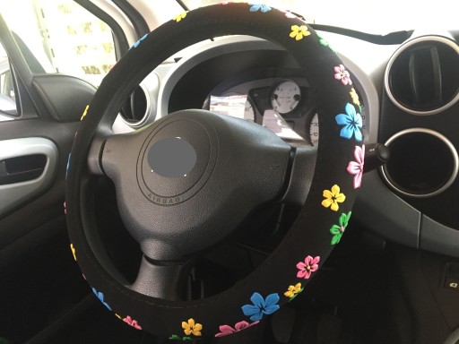Pokrowiec na kierownicę z wysokiej jakości materiału (zamsz) z motywem kwiatów.