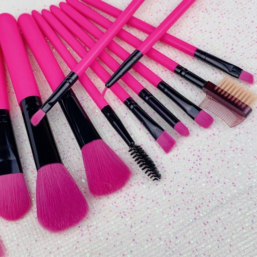 ZESTAW PĘDZLI DO MAKIJAŻU +TUBA ETUI RÓŻOWE 12SZt