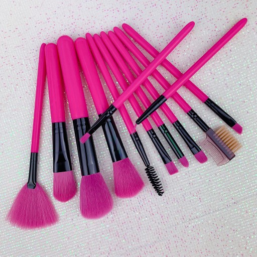ZESTAW PĘDZLI DO MAKIJAŻU +ETUI/TUBA RÓŻOWE 12SZt