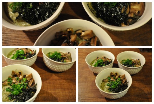 Juk ryżowo jaglany z miyeok, pieczarkami, sezamem i Nori