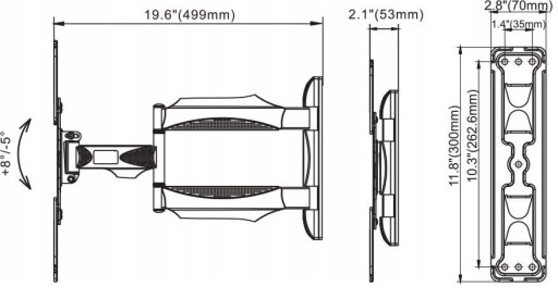 Uchwyt posiada dwa rozkładane ramię, dzięki czemu możliwa jest regulacja odległości telewizora od ściany, a dodatkowo, uchwyt umożliwia regulację położenia urządzenia w trzech płaszczyznach.
