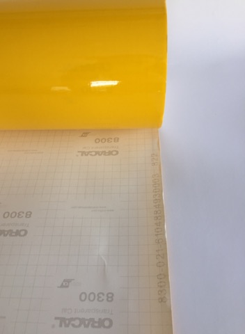 Folia przyciemniająca samoprzylepna, żółta o właściwościach termoplastycznych.