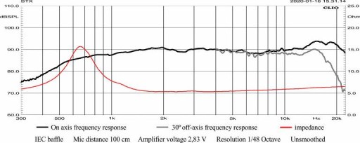 - Zastosowanie wysokoenergetycznego magnesu ferrytowego umożliwiło uzyskanie efektywności na poziomie 90dB co umożliwia współpracę z przeważającą większością głośników średnio i niskotonowych dostępnych na rynku.