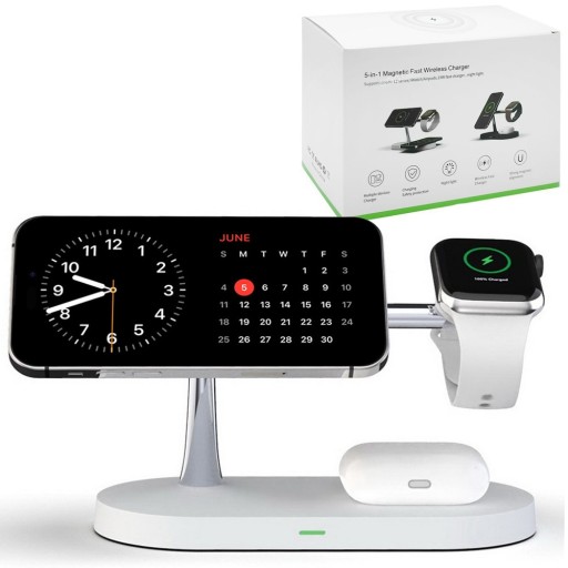 Stacja Smart MagSafe 4w1 | Bezprzewodowa Ładowarka Indukcyjna Qi Stojak | 15W | Biała