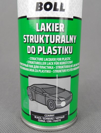 Lakier strukturalny do plastiku jest szybko schnąca i dobrze wiążącą farbą na bazie żywic akrylowych. Doskonale nadaje się do malowania zderzaków plastikowych, listew i innych elementów plastikowych. Tworzy atrakcyjną strukturalną, trwałą powłokę w kolorze czarnego lub ciemno szarego matu (w zależności od koloru czarny/szary). Farba ta może być nanoszona bezpośrednio bez użycia podkładu na wszystkie powierzchnie plastikowe.