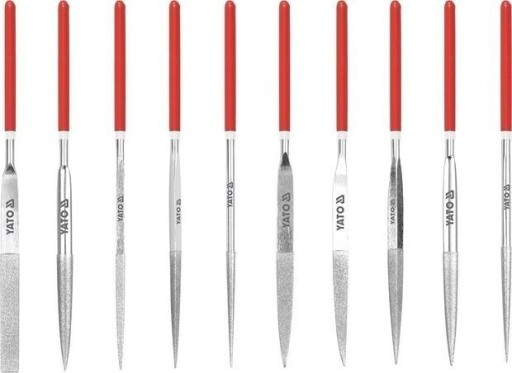 Zestaw 10 sztuk diamentowych pilników - iglaków o różnych profilach.