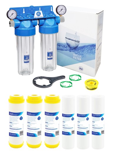 2 STOPNIOWY FILTR WSTĘPNY NA CAŁY DOM Z KOMPLETEM WKŁADÓW I MANOMETRÓW
