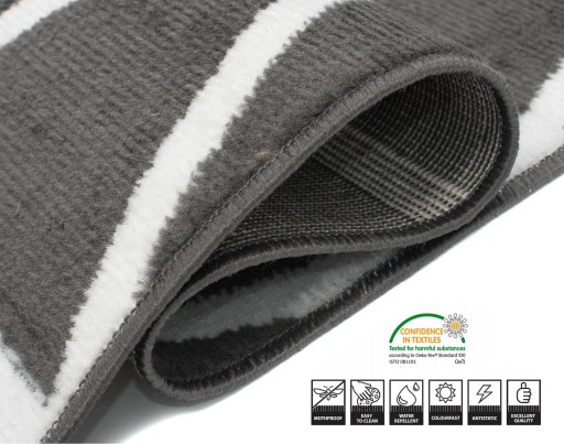 - Posiada certyfikat Oeko-Tex (świadczący o doskonałej jakości i bezpieczeństwie dywanów, które mają bezpośrednią styczność ze skórą człowieka)