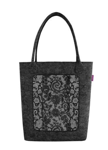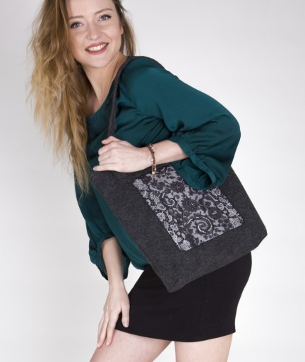 Designerska torba wykonana z grafitowego, ekologicznego filcu o podwyższonej gramaturze, który jest bardzo modnym i trwałym tworzywem wykorzystywanym w galanterii tekstylnej. Największym atutem torby jest innowacyjność i unikatowe wzornictwo oraz trwały nadruk jednostronny (full color) wykonany na filcu.