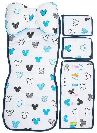 Wkładka posiada 6 otworów na pasy bezpieczeństwa, otwory na zamocowanie poduszki motylka oraz dwa otwory na 5-punktowe pasy bezpieczeństwa. Wkładki są uniwersalne testowane na wielu wózkach dziecięcych dostępnych na rynku.