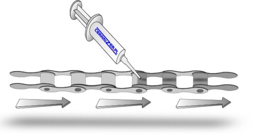 - Przy regularnym stosowaniu smaru Ceramizer® CBB, oprócz codziennego zapewnienia łańcuchowi płynnej i cichej pracy dzięki właściwościom smarnym, uzyskujemy dodatkowe zabezpieczenie przed zużyciem wraz z efektem regeneracyjnym w miejscu tarcia łańcucha i zębatek.