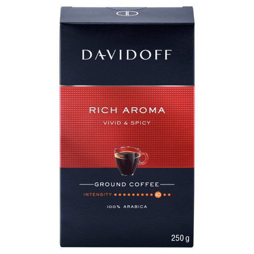 Davidoff Rich Aroma to wyjątkowa kawa mielona, która rewelacyjnie smakuje i jednocześnie lekko pobudza organizm. Jest to średnio palona mieszanka ziaren arabiki, która posiada wyjątkową moc.