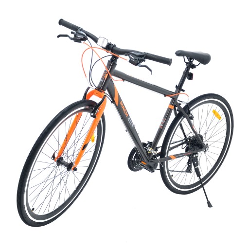 Rower posiada stalową, aerodynamiczna ramę 19", koła 28". Wyposażony w przerzutki Shimano 21 biegów - Shimano Tourney FD-TY500 (przód) i FD-TY300 (tył).
